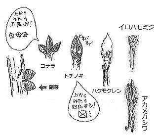 冬芽を作るのは夏からはじめ、木の種類によっていろいろな形をしています![]()