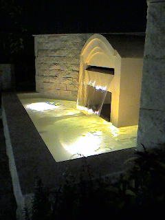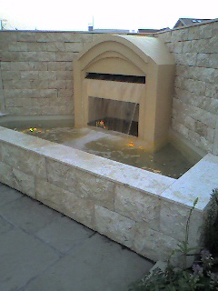 柏展示場の壁泉、防水対策をしっかりやったので本来の水量で流れ出ています。