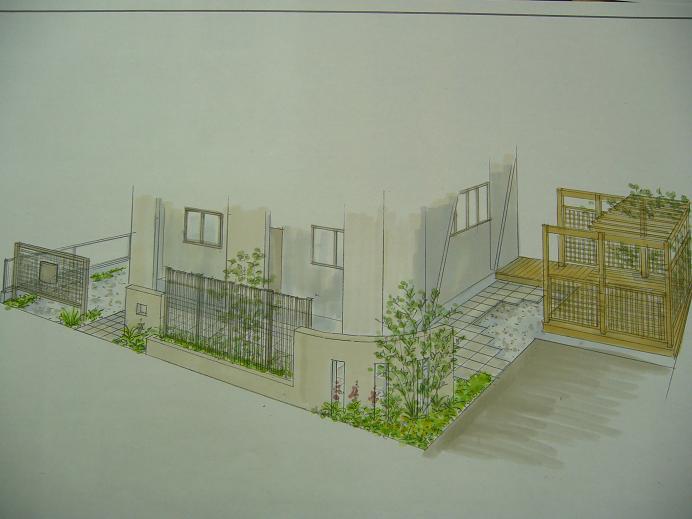 真っ白いシンプルな建物に合わせた外構プランをご提案しました。