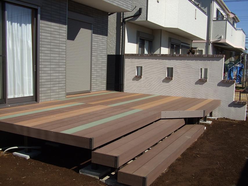 昨日人工木材で作ったご主人こだわりのトリプルカラーウッドデッキが完成しました。写真を載せます!17日お引渡しとなりますので宜しくお願いします。
