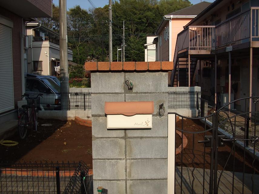 松戸市のF様、角柱が綺麗に納まりました。植栽が入るとさらに良くなります。癒しの庭をご提案しますので、もう少しお待ちください。