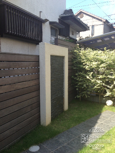 生垣は成長の遅い方を重点的に水やりと肥料をおねがいします。壁のタイルから出た鉄分による錆で塗装面の染みは今後塗り替えでご相談ください。