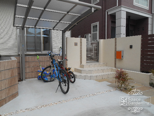 ウリンボーダー、角柱、駐車場水たまり、後日補修させて頂きます。