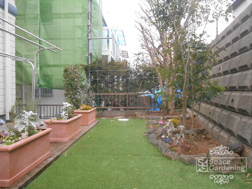 隣地境界プラスチック見切りがういていたので調整させていただきました。