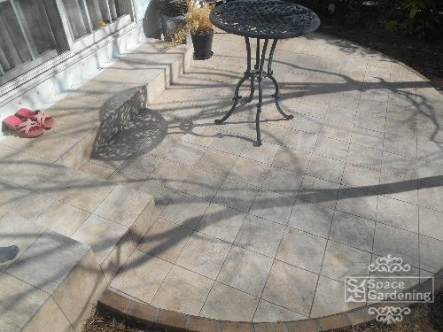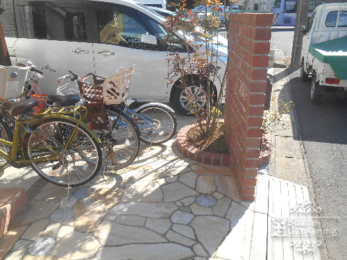駐車場のレンガ見切りと土間の間一部補修させて頂きました。