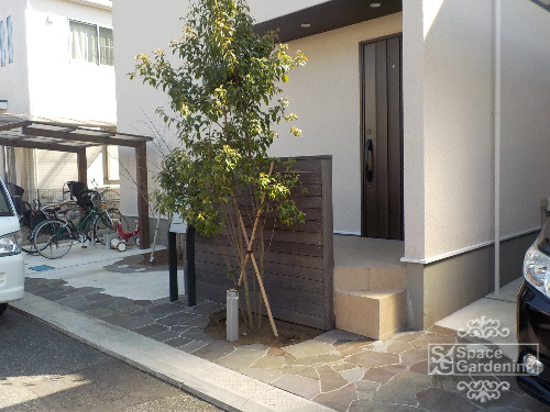 植木の支柱のヒモ劣化の為、交換させて頂きました。