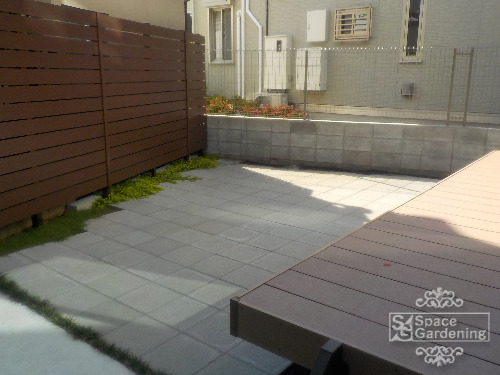 樹脂デッキのステップ横の板材不足の件は、後日補修させて頂きます。別件の、目隠しフェンス工事の際に補修させて頂きます。