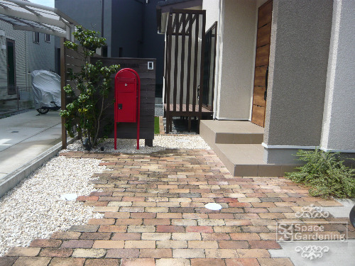 見切材の浮き上がり補修、インターロッキングのモルタル汚れ清掃させて頂きました。