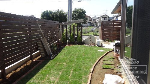 レンガチップ下、防草シート敷きの手直しをさせて頂きました。メンテナンスブックは明日郵送させて頂きます。その他、施工場所は特に問題ありませんでした。