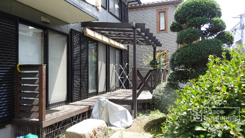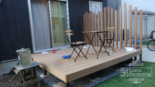 樹脂角柱タッチアップ、樹脂デッキ角の変形が目立つためL字金具などで固定させて頂きました。