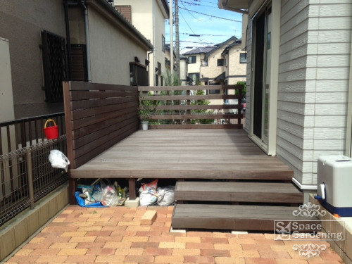 ウッドデッキのペーパー掛け、ビス穴ボンド埋め補修をさせて頂きました。