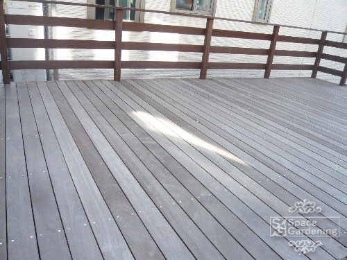 ウリン材へのペーパーがけ補修させて頂きました。