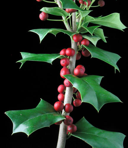 つややかな赤い実と緑の葉は、絶妙のクリスマス