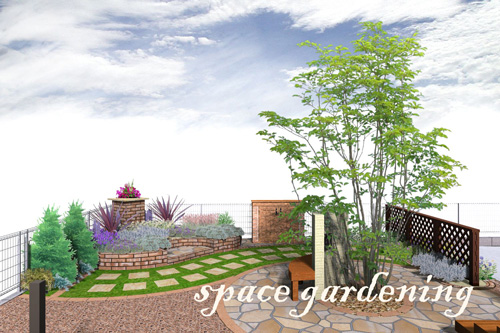 曲線とレンカ゛でやわらかい雰囲気で仕上たお庭で、奥様の雰囲気にぴったり。