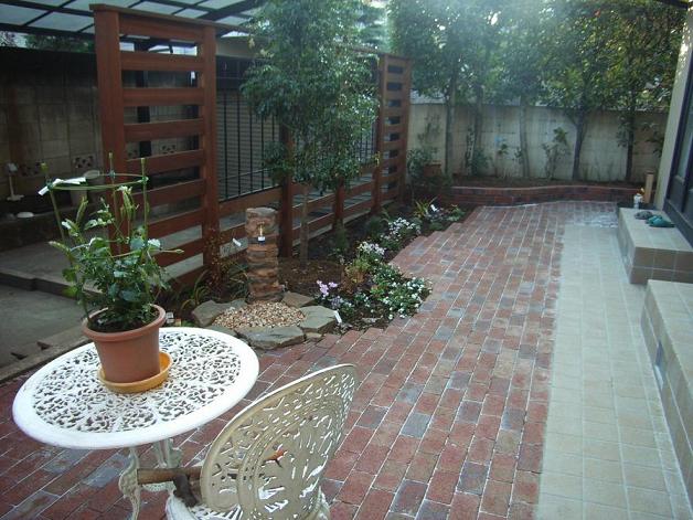 アフ゜ローチとテラスを兼ねたレンカ゛敷きに模様替えです。