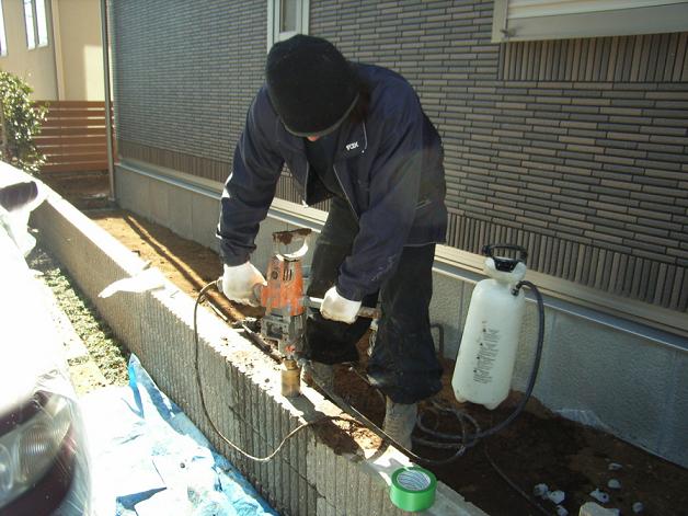 その際に活躍するコアドリルと言う機械を使った作業です。