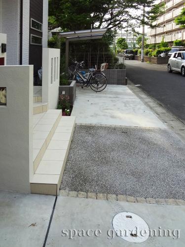 オープン外構シンプル駐車場カーポート土間コンクリート2台駐輪場サイクルポート