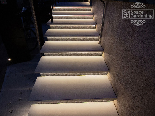 浮き階段タカショーグランドライトドットレスLEDバーレール付き