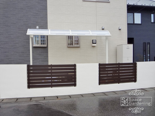 [ 施工例 No - K011020 ] 千葉県野田市 リフォーム外構工事 シンプル オープン 門柱 目隠しフェンス サイクルポート2014-12