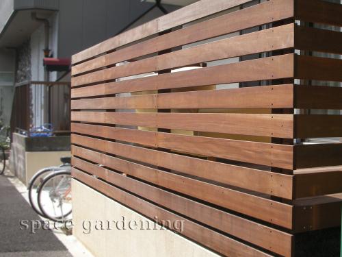 ナチュラル新築外構門柱木製ウリン材目隠しフェンス