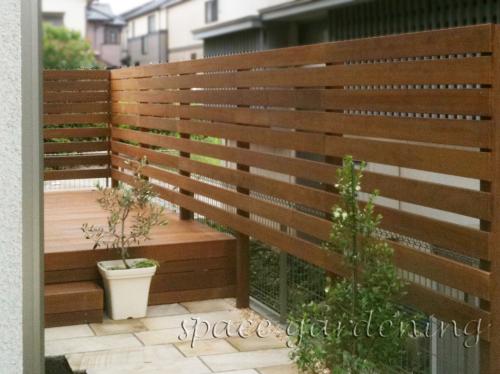 目隠しウッドフェンスウリン材横ボーダーウッドデッキ