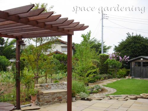 ナチュラル新築庭木製パーゴラテラス屋根ウリン材