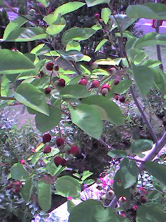 展示場のジューンベリーが赤い実をたくさん付けています。