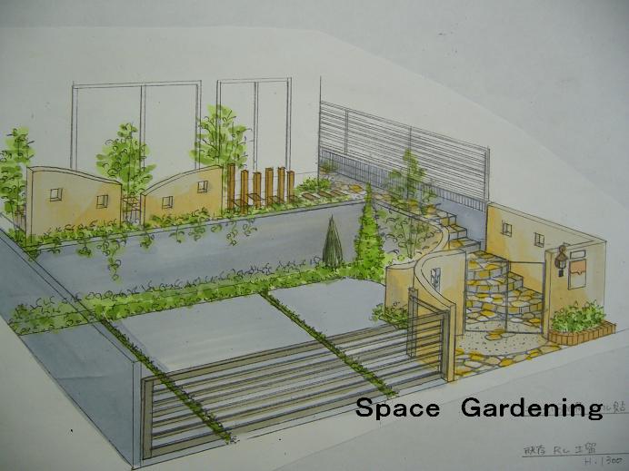 今日は先日完成した、今月の施工例にも紹介されているK様邸の図面をご紹介。門扉や、オーバーゲートで敷地に入れないようにしたクロース゛外構です。道路から1メートルくらい高いところに建物があるので、見栄えのする外構ができました。