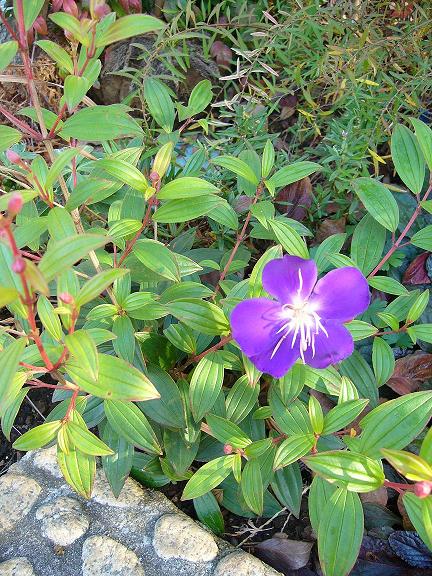 我孫子から柏展示場まで通勤している事務の立本です。 展示場の庭に鮮やかな濃い青紫の花が一輪咲いています。 名前に「ボタン」とついていますが落ち着いた質素な風情な花です。