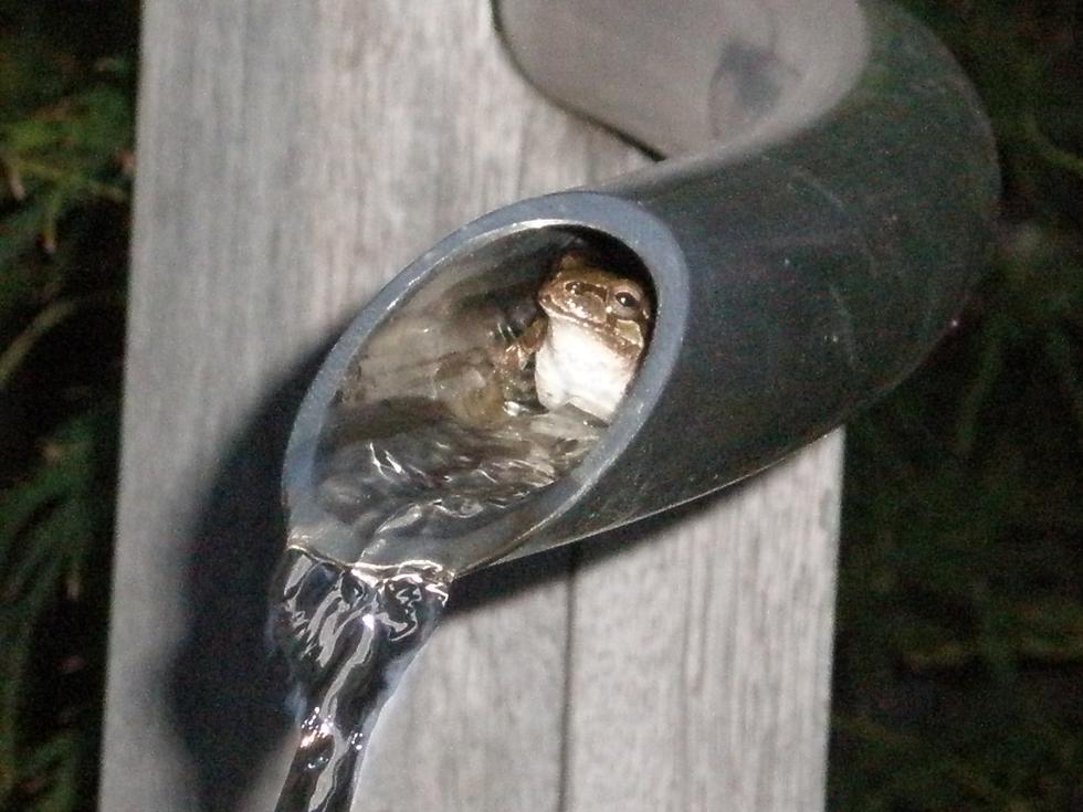 昨日柏の展示場に住み着いた住人?を発見!!和風のコーナーにある水場のS字パイプの先に何か詰まっているので取り除こうかと思ったら・・・