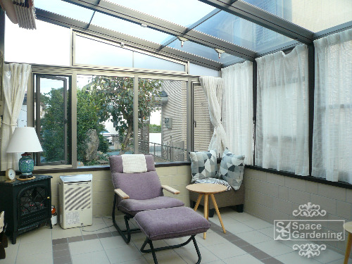 サンルーム折戸のロックが掛かりずらい箇所の調整、内部日除けの外れ1か所付け直しと各内部日除けを注油による動作改善致しました。