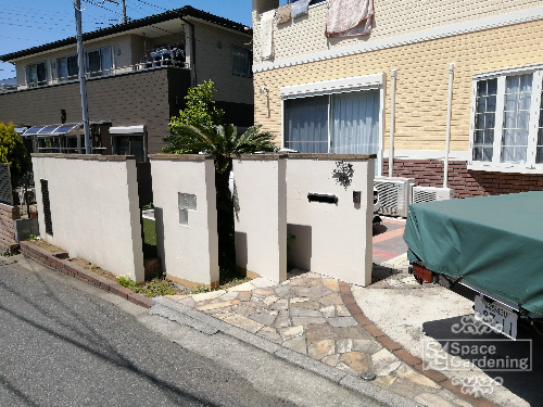 化粧砂利下の防草シートのめくれ手直しさせて頂きました。