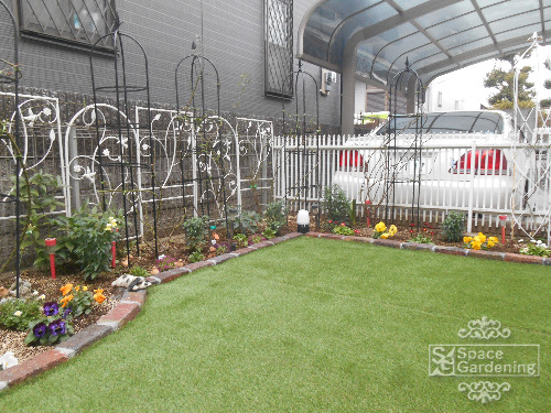 隣地境界プラスチック見切りがういていたので調整させていただきました。