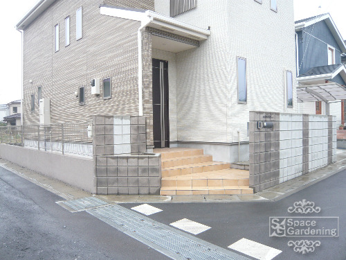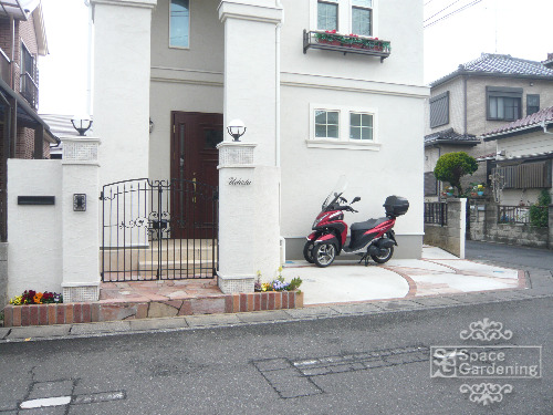 門扉下のレンガのヒビ、補修させて頂きました。