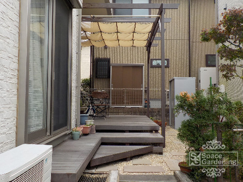 ウッドデッキペーパー掛け補修、砂利下防草シートの手直しさせて頂きました。