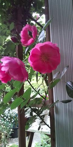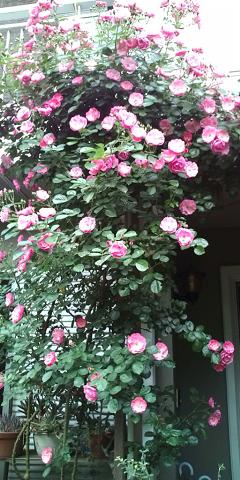 バラのアンジェラが自宅の庭で満開です。