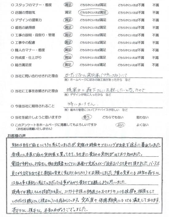 この度は、お庭全面工事をお任せくださり本当にありがとうございました。