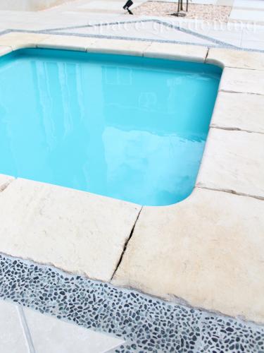 ハイクラスリフォーム庭タイルテラス池シンボルツリー植栽コンクリート平板INAXフィオ