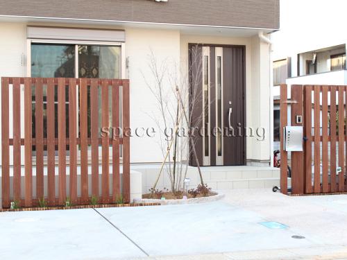 シンプル新築外構機能門柱木製ウリン材