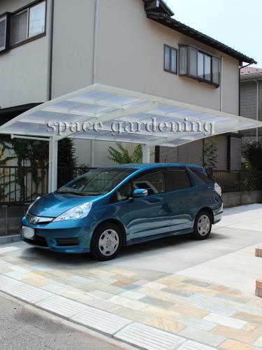 シンプル新築外構駐車場車庫カーポート大仙リアルポートR