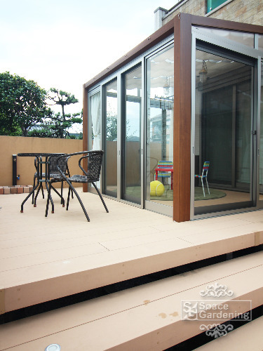 [ 施工例 No - S014228 ] 埼玉県さいたま市 YKK サンルーム ウッドデッキ 庭リフォーム2016-5